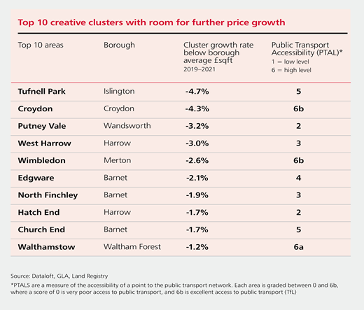 Creative clusters across Greater London identified for house price growth